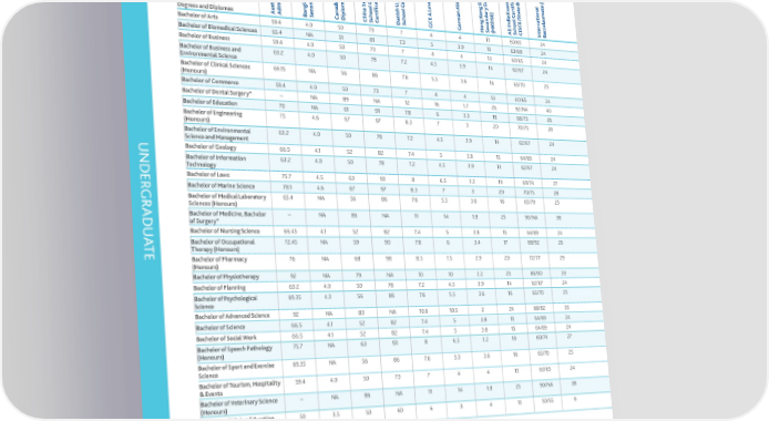 Undergraduate academic entry requirements The following scores are a guide for entry into JCU undergraduate courses at school-leaving level. Students with existing university qualifications (or equivalent) will be considered for entry and may be eligible for credit. Joint degree entry requirements are determined by the degree with the highest entry score. ) ) a g n ) M n a a ) ool y m i de n c c R y r o n P v n or oola l n / i i e h r a f l T a on de e e h y a r r A t a d o n r p i S y e i a e/ t a n yg de e e a T Sc d n a o i tio g ( c t r l a a b l tio t n y A r ca y n n o & D y a g n L a f o g c Sci o l a e a m m m r ( e r o c e tio ni e rd n ia l k e r o tio e a b d o fi o t a t B uc i s r fi o at a r uc ia k i c i om a I ar ie ool S i i h t l) & e f A f A c gh t t a l a o d y c t K k c a e d e gs r pl t i r da a Se c uc Se c ( d l Ta h amin ma e de r n N n a e i r a e n Se r ur ip e E i e d i e e r c E v n n s o r s o e u fi s t d m fi B l t f j ofi x ac r S n fi f e å ol be D R H o r d e i l i D a i e a on i al r Sc n n V S o r e a g rå k r e o e T s h C c o p t E t t c o / E t r C f n ti ) Ge o t c t y a r e b g y x r n ea e e e i g s t p ic r I e d L v f s ö a a n s r e ni r te p e v r e a r e t M P t t o o a c p te r e S n t e g ie f t s t ool on e e A ) E u a - Sn V ane f in y i f a A e T ia i a S a G a U C n on a E a C tio S a i a se a a y g l r ine a a a U k a c n y l h s Se c d i /St a la c s r e c c a e m c A C L c n t as o A al s nd da fi K n d E n an fi y l fi fi e m n e fi h r n fi a e n d S S d S Sc r a om a i sh g DS n r a ja a i i w r ma a o i t A a d be sk e e glado l n ool t ool E A L ma o ool C c y ti a t t e l ipp t io ti v t men t t h Undergraduate st n i r ni r I e r l a p r r r e l G – Ur L r m g i T/ i n h h c K l h S t n a l e o d t i pl atu ad u n M d u a g u dmi a ec a ip h e a C e on e l I n ac e e e e e i i h i K c N e o e U e A we l y ö x n C n i Degrees and Diplomas A A B S C D C Sc C D Sc G G H S (H A Sc C I B K C M P N C C N V V opp P D ( A P C S S ( Sri C ( S S G H E U A U H Bachelor of Arts 59.4 4.0 50 73 7 4 4 13 60/65 24 7 6 66/2.65 2.77 75 3 3.69 1.7 1.2 20/940 2.4 Bachelor of Biomedical Sciences 65.4 NA 51 81 7.3 5 3.9 15 63/68 24 8 6.5 NA 3.08 NA NA 4.08 1.9 1.5 21/980 NA Bachelor of Business 59.4 4.0 50 73 7 4 4 13 60/65 24 7 6 66/2.65 2.77 75 3 3.69 1.7 1.2 20/940 2.4 Bachelor of Business and 63.2 4.0 50 78 7.2 4.5 3.9 14 62/67 24 8 6.3 73/2.9 2.95 80 3.4 3.94 1.8 1.4 21/960 2.6 Environmental Science Bachelor of Clinical Sciences 69.15 NA 56 86 7.6 5.5 3.6 16 65/70 25 8.5 6.7 NA 3.38 NA NA 4.38 2 1.6 21/980 NA (Honours) Bachelor of Commerce 59.4 4.0 50 73 7 4 4 13 60/65 24 7 6 66/2.65 2.77 75 3 3.69 1.7 1.2 20/940 2.4 Bachelor of Dental Surgery* − NA 89 NA 12 16 1.7 26 92/NA 40 NA 10.8 NA 5.6 NA NA 6.13 3.6 4.0 33/1400 NA Bachelor of Education 70 NA 61 91 7.8 6 3.3 18 68/73 26 9 6.9 NA 3.68 NA NA 4.68 2.2 1.9 22/1000 NA Bachelor of Engineering 75 4.6 67 97 8.3 7 3 20 70/75 28 9.5 7.4 NA 4.05 NA NA 5.05 2.4 2.4 24/1080 NA (Honours) Bachelor of Environmental 63.2 4.0 50 78 7.2 4.5 3.9 14 62/67 24 8 6.3 73/2.9 2.95 80 3.4 3.94 1.8 1.4 21/960 2.6 Science and Management UNDER Bachelor of Geology 66.5 4.1 52 82 7.4 5 3.8 15 64/69 24 8 6.5 77/3.1 3.15 84 3.6 4.15 1.9 1.5 21/980 2.8 TE Bachelor of Information 63.2 4.0 50 78 7.2 4.5 3.9 14 62/67 24 8 6.3 73/2.9 2.95 80 3.4 3.94 1.8 1.4 21/960 2.6 TE Technology Bachelor of Laws 75.7 4.5 63 93 8 6.5 3.2 19 69/74 27 9.5 7.1 92/3.68 3.83 92 4.5 4.75 2.3 2.1 22/1020 3.4 Bachelor of Marine Science 78.1 4.6 67 97 8.3 7 3 20 70/75 28 9.5 7.4 97/3.87 4.05 94 4.8 4.98 2.4 2.4 24/1080 3.6 GRADUA Bachelor of Medical Laboratory 65.4 NA 56 86 7.6 5.5 3.6 16 65/70 25 8.5 6.7 NA 3.38 NA NA 4.38 2 1.6 21/980 NA Sciences (Honours) GRADUA Bachelor of Medicine, Bachelor − NA 86 NA 11 14 1.8 25 90/NA 38 NA 10 NA 5.2 NA NA 5.93 3.3 3.8 32/1380 NA GRADUA of Surgery* Bachelor of Nursing Science 66.45 4.1 52 82 7.4 5 3.8 15 64/69 24 8 6.5 77/3.1 3.15 84 3.6 4.15 1.9 1.5 21/980 2.8 Bachelor of Occupational 72.45 NA 59 90 7.8 6 3.4 17 88/92 26 9 6.8 NA 3.6 NA NA 4.6 2.1 1.8 22/1000 NA TE Therapy (Honours) UNDER Bachelor of Pharmacy 76 NA 68 98 8.5 7.5 2.9 20 72/77 29 9.5 7.5 NA 4.13 NA NA 5.13 2.5 2.5 24/1100 NA UNDER (Honours) Bachelor of Physiotherapy 92 NA 79 NA 10 10 2.2 23 85/90 33 10.5 9 NA 4.73 NA NA 5.73 3 3.3 28/1270 NA Bachelor of Planning 63.2 4.0 50 78 7.2 4.5 3.9 14 62/67 24 8 6.3 73/2.9 2.95 80 3.4 3.94 1.8 1.4 21/960 2.6 Bachelor of Psychological 69.35 4.3 56 86 7.6 5.5 3.6 16 65/70 25 8.5 6.7 82/3.29 3.38 86 3.9 4.38 2 1.6 21/980 3 Science Bachelor of Advanced Science 92 NA 83 NA 10.6 10.5 2 24 88/92 35 11 10 NA 4.93 NA NA 5.93 3.1 3.5 30/1330 NA Bachelor of Science 66.5 4.1 52 82 7.4 5 3.8 15 64/69 24 8 6.5 77/3.1 3.15 84 3.6 4.15 1.9 1.5 21/980 2.8 Bachelor of Social Work 66.5 4.1 52 82 7.4 5 3.8 15 64/69 24 8 6.5 77/3.1 3.15 84 3.6 4.15 1.9 1.5 21/980 2.8 Bachelor of Speech Pathology 75.7 NA 63 93 8 6.5 3.2 19 69/74 27 9.5 7.1 NA 3.83 NA NA 4.75 2.3 2.1 22/1020 NA (Honours) Bachelor of Sport and Exercise 69.35 NA 56 86 7.6 5.5 3.6 16 65/70 25 8.5 6.7 NA 3.38 NA NA 4.38 2 1.6 21/980 NA Science Bachelor of Tourism, Hospitality 59.4 4.0 50 73 7 4 4 13 60/65 24 7 6 66/2.65 2.77 75 3 3.69 1.7 1.2 20/940 2.4 & Events Bachelor of Veterinary Science − NA 86 NA 11 14 1.8 25 90/NA 38 NA 10 NA 5.2 NA NA 5.93 3.3 3.8 32/1380 NA (Honours) Diploma of Higher Education 50 3.5 50 60 6 3 4 11 50/55 9 6 5 50/2.00 2.31 75 2 ** 1.5 1.1 − 2 (except Business major) *Scores provided are indicative minimum thresholds only. Admission is based on special entry requirements in addition to academic achievement. Bangladesh Higher Secondary Certificate: Grade average of final year GCE A LEVELS : A total score of calculated from a maximum three A of the best five subjects including 4 core subjects where 5**=7, 5*=6, Malaysia STPM: combined a total of best three academic subjects: Sri Lanka: Calculated as a grade average of bes