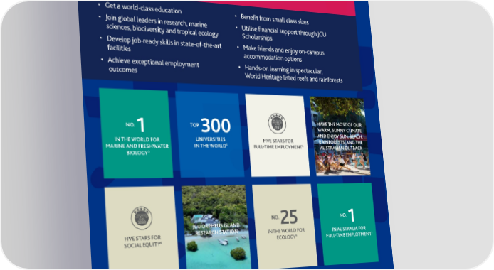TOP 75 NO. 2 TOP JCU DAINTREE UNIVERSITIES IN THE 125 RAINFOREST OBSERVATORY WORLD FOR GEOGRAPHY IN AUSTRALIA FOR IN THE WORLD FOR LIFE FULL-TIME GRADUATE 5 AND MINING AND MINERAL 7 SCIENCES 4 SALARIES Why JCU? ENGINEERING • Get a world-class education • Benefit from small class sizes • Join global leaders in research, marine • Utilise financial support through JCU TOP ‘WORLD CLASS sciences, biodiversity and tropical ecology Scholarships 20 OR HIGHER’ • Develop job-ready skills in state-of-the-art • Make friends and enjoy on-campus UNIVERSITIES IN AUSTRALIA ACCESS TO LEADING FOR UN SUSTAINABLE ACADEMICS FIVE STARS FOR IN 83% facilities accommodation options 3 6 DEVELOPMENT GOALS LEARNER ENGAGEMENT 9 OF RESEARCH FIELDS • Achieve exceptional employment • Hands-on learning in spectacular, outcomes World Heritage listed reefs and rainforests ON-CAMPUS MAKE THE MOST OF OUR ACCOMMODATION NO. 1 TOP 300 WARM, SUNNY CLIMATE FOR OVER AND ENJOY SUN, BEACH, 21,498 4,463 HANDS-ON LEARNING IN THE WORLD FOR UNIVERSITIES FIVE STARS FOR RAINFORESTS, AND THE IN THE WORLD5 6 STUDENTS EMPLOYEES 1,600 MARINE AND FRESHWATER FULL-TIME EMPLOYMENT AUSTRALIAN OUTBACK BIOLOGY3 STUDENTS STUDENTS FROM NO. NO. 7 JCU ORPHEUS ISLAND 25 1 WORLD-CLASS $1.9Bn FIVE STARS FOR RESEARCH STATION IN THE WORLD FOR IN AUSTRALIA FOR FACILITIES IN FUTURE HIGHLY CITED 111 6 4 1 RESEARCHERS8 SOCIAL EQUITY ECOLOGY FULL-TIME EMPLOYMENT INVESTMENT10 COUNTRIES TOP 100 RESEARCH CONNECTIONS TO FIELD AND LAB TIME, EXPERIENCE AUSTRALIAN IN THE WORLD FOR EARTH AUSTRALIA’S FIRST 25 12 JCU FLETCHERVIEW WORK-INTEGRATED CULTURE IN A WELCOMING AND MARINE SCIENCES, INTERNET OF THINGS JCU SPECIALISED RESEARCH STATION LEARNING PROGRAMS AND DIVERSE COMMUNITY ENVIRONMENTAL SCIENCES, RESEARCH LAB RESEARCH CENTRES DISTINGUISHED 124 AND INTERNSHIPS AND HOSPITALITY AND & INSTITUTES PROFESSORSHIPS ode 00117J COUNTRIES C LEISURE MANAGEMENT4 vider o CRICOS Pr 1 2 6 7 8 9 10 2019-2021 (aggregated) Quality Indicators for Learning and Teaching (QILT) Graduate Outcomes Survey, International UG study area. THE World University Rankings 2022 as a percentage of the total number of universities according to the International 2022 Good Universities Guide. 2021 International Outcomes Survey. 2021 Web of Science. 2018 Excellence in Research for Australia (ERA). 2018 JCU Impact Report. 3 4 5 Association of Universities. 2017 Center for World University Rankings (CWUR). 2021 Global Ranking of Academic Subjects (GRAS). 2022 Times Higher Education (THE) World University Rankings