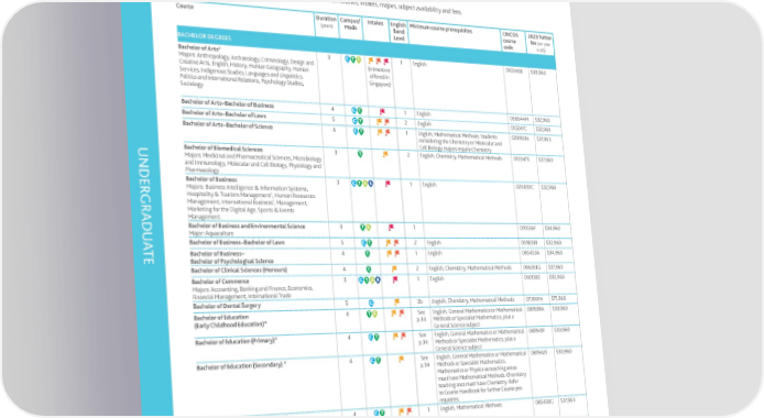 Course Duration Campus/ Intakes English Minimum course prerequisites CRICOS 2023 Tuition Undergraduate courses and fees (years) Mode Band course fee (per year Level code in A$) Bachelor of Medical Laboratory Science (Honours) 4 2 English, Chemistry, Mathematical Methods 094675A $37,960 Bachelor of Medicine, 6 3b English, Chemistry, Mathematical Methods 043052K $65,960 The fees listed are in Australian dollars and are based on the annual international tuition fee for students commencing in 2023. Annual (per year) Bachelor of Surgery international tuition fee equates to 24 credit points. Tuition fees may increase each year. Bachelor of Nursing Science 3 3c English 010441C $34,960 Please note that some majors and subjects are not available on all campuses and that some courses or subjects are not available every semester or Bachelor of Occupational Therapy (Honours) 4 3a English, plus one of: Biology, Chemistry, 094677K $37,960 trimester intake. Majors: Professional Honours, Research Honours Physics, Health, Phychology or Physical Education Please visit Bachelor of Pharmacy (Honours) 4 3a English, Chemistry, Mathematical Methods 094678J $37,960 jcu.edu.au for the most up-to-date information on courses, intakes, majors, subject availability and fees. Majors: Professional Honours, Research Honours Bachelor of Physiotherapy 4 3a English, Mathematical Methods plus one of: 053801F $41,200 Course Duration Campus/ Intakes English Minimum course prerequisites CRICOS 2023 Tuition Biology, Chemistry, Physics, Health, Physical (years) Mode Band course fee (per year Education or Psychology Level code in A$) Bachelor of Planning 4 1 English 056694B $34,960 BACHELOR DEGREES Bachelor of Psychological Science 3 1 English 085452B $34,960 Bachelor of Arts2 3 1 English 010346B $30,960 Bachelor of Advanced Science 3 1 English, Mathematical Methods 092515M $39,000 Majors: Anthropology, Archaeology, Criminology, Design and (trimesters Majors: Advanced Molecular and Cell Biology, Aquaculture Creative Arts, English, History, Human Geography, Human offered in Science & Technology, Chemistry, Data Science, Earth Services, Indigenous Studies, Languages and Linguistics, Singapore) Science, Marine Biology, Mathematics, Physics, Zoology & Politics and International Relations, Psychology Studies, Ecology. Sociology Bachelor of Science 3 1 076290A $37,960 Majors: Aquaculture Science & Technology, Chemistry, Data Bachelor of Arts–Bachelor of Business 4 1 English 036644M $32,960 Science, Earth Science, Internet of Things, Marine Biology, Mathematics, Molecular & Cell Biology, Physics, Zoology Bachelor of Arts–Bachelor of Laws 5 2 English 013247C $32,960 and Ecology 3 Bachelor of Arts–Bachelor of Science 4 1 English, Mathematical Methods. Students 028993A $37,960 Bachelor of Science–Bachelor of Laws 5 2 English, Mathematical Methods. Students 017881M $37,960 considering the Chemistry or Molecular and considering the Chemistry or Molecular and Cell Biology majors require Chemistry Cell Biology majors will require Chemistry UNDER Bachelor of Biomedical Sciences 3 2 English, Chemistry, Mathematical Methods 013347K $37,960 Bachelor of Social Work 4 3c English 010351E $30,960 Majors: Medicinal and Pharmaceutical Sciences, Microbiology (Brisbane TE and Immunology, Molecular and Cell Biology, Physiology and tri 1 only) Pharmacology Bachelor of Speech Pathology (Honours) 4 See English, plus one of: Biology, Chemistry, 094679G $41,200 Bachelor of Business 3 1 English 026830C $32,960 p.34 Physics, Psychology or Health Majors: Business Intelligence & Information Systems, Bachelor of Sport and Exercise Science 3 2 English; General Mathematics or Mathematical 029013A $34,960 1 GRADUA Hospitality & Tourism Management , Human Resources Methods or Specialist Mathematics 1 Management, International Business , Management, Bachelor of Sport and Exercise Science–Bachelor of 5 2 English; General Mathematics or Mathematical 093297G $34,960 Marketing for the Digital Age, Sports & Events Management. Psychological Science Methods or Specialist Mathematics GRADUA Bachelor of Tourism, Hospitality and Events 3 1 English 0101080 $32,960 Bachelor of Business and Environmental Science 3 1 070556F $34,960 Major: Aquaculture Bachelor of Veterinary Science (Honours) 5 3c English, Mathematical Methods, Chemistry 105718M $65,960 Bachelor of Business–Bachelor of Laws 5 2 English 031833B $32,960 TE Bachelor of Business– 4 1 English 085453A $34,960 * All applicants for initial teacher education courses must satisfy both academic and non-academic entry criteria. QTAC assesses applicants’ non-academic capabilities using an instrument Bachelor of Psychological Science UNDER Bachelor of Clinical Sciences (Honours) 4 2 English, Chemistry, Mathematical Methods 096261G $37,960 developed with the Australian Council of Deans of Education. Students must meet English language proficiency requirements for teacher registration in Australia, either on entry to or graduation from the program. Bachelor of Commerce 3 1 English 0101385 $32,960 Majors: Accounting, Banking and Finance, Economics, Financial Management, International Trade Bachelor of Dental Surgery 5 3b English, Chemistry, Mathematical Methods 073997A $71,960 Bachelor of Education 4 See English, General Mathematics or Mathematical 081938A $30,960 DIPLOMAS (Early Childhood Education)* p.34 Methods or Specialist Mathematics, plus a Diploma of Higher Education 1 T, C 1 English 082841B $30,960 General Science subject Bachelor of Education (Primary)* 4 See English, General Mathematics or Mathematical 081941F $30,960 Major: Business p.34 Methods or Specialist Mathematics, plus a Diploma of Higher Education 1 T, C, S 1 Nil 082840C $30,960 General Science subject Majors: Business Studies; Education, Engineering and Applied Bachelor of Education (Secondary) * 4 See English, General Mathematics or Mathematical 081942E $30,960 Science; General Studies; Information Technology; Science; p.34 Methods or Specialist 