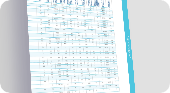 Undergraduate academic entry requirements The following scores are a guide for entry into JCU undergraduate courses at school-leaving level. Students with existing university qualifications (or equivalent) will be considered for entry and may be eligible for credit. Joint degree entry requirements are determined by the degree with the highest entry score. ) ) a g n ) M n a a )oolym i de n c c Ryr o n P v n orool a l n / i i ehraf l T a on de e e h y a r r Atad onr p i S y e i a e/ t a n yg de e e a T Scd naoi tio g ( c t r l a a b l tio t n yArcaynno & D y a g n L a f o g c Sc i o l a e a m m m r (erocetionierd n ia l k e r o tio e a b d o fiotatB uc i s r fi o at a r uc iakiciomaI ar ie ool S i i h t l) & e f A f A cghttalao d y c t K k c a e d e gs r pl tirdaa Secuc Sec ( d l T a h amin ma e de r n N n a e i raen Serurip e E i e d i e e r c E v n n s o r s o eufistdmfi Blt f j ofi x ac r S n fi f e å ol be D R Hordeili Daiea on i al r Sc n n V S o r e a g rå k r e o e Tsh Ccopt Ett c o / E t r C f n ti ) Ge o t c t yarebgyxrnea e e e i g s t p ic r I e d L v f s ö a a nsrenirtepevrear e t M P t t o o a c p te r e S n t e g ie f t s t ool onee A) Eu a - Sn V ane f in y i f a A e T iaia Sa Ga U CnonaEa Ctio S a i a se a a y g l r inea a a U k a c n y l h s Secdi/Stala c s r e c c a e m c A C L c n t as o A alsnddafi KndEn an fi y l fi fi e m n e fi h r n fi a e n d S S d S Sc raomaishgDSnra ja a i i w r ma a o i t A a d be sk e e gladolnooltoolE A LmaooolCc y ti a t t e l ipp t io ti v t men t t h Undergraduatestnirnir Ie r l a p r r r e l G – Ur L r m g i T/ i nhhcKlhSt n a l e o d t i pl atu ad u n M d u a g udmiaecaipheaCeonelInac e e e e e i i h i K c N e o e U e A we l y ö x n C n i Degrees and DiplomasAABSCDCScCDScGGHS(HAScCIBKC M P N C C N V V opp P D ( A P C S S ( SriC ( S S G H E U A U H Bachelor of Arts59.44.050737441360/65247 6 66/2.65 2.77 75 3 3.69 1.7 1.2 20/940 2.4 Bachelor of Biomedical Sciences65.4NA51817.353.91563/682486.5 NA 3.08 NA NA 4.08 1.9 1.5 21/980 NA Bachelor of Business59.44.050737441360/65247 6 66/2.65 2.77 75 3 3.69 1.7 1.2 20/940 2.4 Bachelor of Business and 63.24.050787.24.53.91462/672486.3 73/2.9 2.95 80 3.4 3.94 1.8 1.4 21/960 2.6 Environmental Science Bachelor of Clinical Sciences 69.15NA56867.65.53.61665/70258.56.7 NA 3.38 NA NA 4.38 2 1.6 21/980 NA (Honours) Bachelor of Commerce59.44.050737441360/65247 6 66/2.65 2.77 75 3 3.69 1.7 1.2 20/940 2.4 Bachelor of Dental Surgery*−NA89NA12161.72692/NA40NA10.8 NA 5.6 NA NA 6.13 3.6 4.0 33/1400 NA Bachelor of Education70NA61917.863.31868/73269 6.9 NA 3.68 NA NA 4.68 2.2 1.9 22/1000 NA Bachelor of Engineering 754.667978.3732070/75289.57.4 NA 4.05 NA NA 5.05 2.4 2.4 24/1080 NA (Honours) Bachelor of Environmental 63.24.050787.24.53.91462/672486.3 73/2.9 2.95 80 3.4 3.94 1.8 1.4 21/960 2.6 Science and Management UNDERBachelor of Geology66.54.152827.453.81564/692486.5 77/3.1 3.15 84 3.6 4.15 1.9 1.5 21/980 2.8 TEBachelor of Information 63.24.050787.24.53.91462/672486.3 73/2.9 2.95 80 3.4 3.94 1.8 1.4 21/960 2.6 TE Technology Bachelor of Laws75.74.5639386.53.21969/74279.5 7.1 92/3.68 3.83 92 4.5 4.75 2.3 2.1 22/1020 3.4 Bachelor of Marine Science78.14.667978.3732070/75289.57.4 97/3.87 4.05 94 4.8 4.98 2.4 2.4 24/1080 3.6 GRADUABachelor of Medical Laboratory 65.4NA56867.65.53.61665/70258.56.7NA 3.38 NA NA 4.38 2 1.6 21/980 NA Sciences (Honours) GRADUABachelor of Medicine, Bachelor −NA86NA11141.82590/NA38NA10 NA 5.2 NA NA 5.93 3.3 3.8 32/1380 NA GRADUA of Surgery* Bachelor of Nursing Science66.454.152827.453.81564/692486.5 77/3.1 3.15 84 3.6 4.15 1.9 1.5 21/980 2.8 Bachelor of Occupational 72.45NA59907.863.41788/922696.8 NA 3.6 NA NA 4.6 2.1 1.8 22/1000 NA TETherapy (Honours) UNDERBachelor of Pharmacy 76NA68988.57.52.92072/77299.57.5 NA 4.13 NA NA 5.13 2.5 2.5 24/1100 NA UNDER (Honours) Bachelor of Physiotherapy92NA79NA10102.22385/903310.59 NA 4.73 NA NA 5.73 3 3.3 28/1270 NA Bachelor of Planning63.24.050787.24.53.91462/672486.3 73/2.9 2.95 80 3.4 3.94 1.8 1.4 21/960 2.6 Bachelor of Psychological 69.354.356867.65.53.61665/70258.56.7 82/3.29 3.38 86 3.9 4.38 2 1.6 21/980 3 Science Bachelor of Advanced Science92NA83NA10.610.522488/92351110 NA 4.93 NA NA 5.93 3.1 3.5 30/1330 NA Bachelor of Science66.54.152827.453.81564/69248 6.5 77/3.1 3.15 84 3.6 4.15 1.9 1.5 21/980 2.8 Bachelor of Social Work66.54.152827.453.81564/692486.5 77/3.1 3.15 84 3.6 4.15 1.9 1.5 21/980 2.8 Bachelor of Speech Pathology 75.7NA639386.53.21969/74279.57.1 NA 3.83 NA NA 4.75 2.3 2.1 22/1020 NA (Honours) Bachelor of Sport and Exercise 69.35NA56867.65.53.61665/70258.56.7 NA 3.38 NA NA 4.38 2 1.6 21/980 NA Science Bachelor of Tourism, Hospitality 59.44.050737441360/652476 66/2.65 2.77 75 3 3.69 1.7 1.2 20/940 2.4 & Events Bachelor of Veterinary Science −NA86NA11141.82590/NA38NA10 NA 5.2 NA NA 5.93 3.3 3.8 32/1380 NA (Honours) Diploma of Higher Education 503.550606341150/5596 5 50/2.00 2.31 75 2 ** 1.5 1.1 − 2 (except Business major) *Scores provided are indicative minimum thresholds only. Admission is based on special entry requirements in addition to academic achievement. Bangladesh Higher Secondary Certificate: Grade average of final year GCE A LEVELS : A total score of calculated from a maximum three A of the best five subjects including 4 core subjects where 5**=7, 5*=6, Malaysia STPM: combined a total of best three academic subjects: Sri Lanka: Calculated as a grade average of best 3 Advanced Level results: A+/80-100 = 5.0; A/70-79 = 4.0; A-/60-69 = 3.5; B/50-59 = 3.0; Level subjects or a combination of A Level and AS Level subjects. The 5=5. 4=4, 3=3, 2=2, 1=1, A*=6, A=5, B=4, C=3, D=2, E=1, Attained A=4.0, A-=3.67, B+=3.33. B=3.0, B-=2.67, C+=2.33, C=2.0, C-=1.67, subjects, where A (Distinction)=4, B (Very good pass)=3, C (Credit C/40-49 = 2.0; D/33-39 = 1.0; F/0-32 = 0.0. 1 is a pass. A Level subjects scores are calculated as follows: A*=6, A=5, B=4, C=3, with Distinction (ll)= 4, Attained with Distinction (l) =3, Attained =2, D+=1