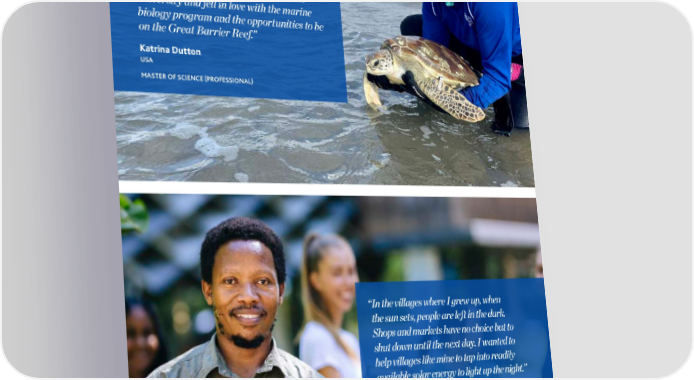 NO. 2 TOP 75 “After I graduated college, I heard things in the world for in the world for Mining and from people about JCU in the environmental Biodiversity Conservation Mineral Engineering world and how they loved the program as 2017 Center for World University Rankings (CWUR) 2021 Global Ranking of Academic Subjects (GRAS) well as the researchers. I researched the university and fell in love with the marine Master of Marine Biology biology program and the opportunities to be Where better to study Marine Biology than at the university ranked on the Great Barrier Reef.” number one in the world for Marine and Freshwater Biology? Students gain unrivalled practical experience in unique locations including Katrina Dutton the JCU Orpheus Island Research Station on the Great Barrier Reef, and USA work with emerging technologies for marine ecosystem monitoring. Professional experience can be further developed via an internship option MASTER OF SCIENCE PROFESSIONAL with leading organisations in North Queensland, further afield in Australia, or internationally. An optional research project is also available. Master of Engineering (Professional) This robust postgraduate program develops advanced skills and knowledge highly-valued within the engineering sector. Students study general and advanced engineering and develop professional skills in risk engineering, asset management, safety in design, business leadership and data analytics. Master of Information Technology JCU Master of Information Technology graduates are highly skilled and well equipped to solve technology challenges of the future. The degree includes foundation and core subjects to foster advanced critical analysis skills and develop comprehensive knowledge of tools and technologies. Students benefit from the opportunity to gain hands-on experience applying new skills to practical problems and learn from industry experts. Graduates are eligible to become an Associate Member of the Australian Computer Society (ACS). “In the villages where I grew up, when “The Master of Marine Biology the sun sets, people are left in the dark. will provide graduates with the Shops and markets have no choice but to skills most sought after by marine shut down until the next day. I wanted to sector employers. Students develop help villages like mine to tap into readily specialist knowledge in different available solar energy to light up the night.” Want more JCU fields of marine science, and gain hands-on experience of professional Douglas Muthamia international student practice with either a focus on KENYA knowledge discovery or work MASTER OF ENGINEERING PROFESSIONAL stories? integrated learning.” www.instagram.com/jamescookuniversity Associate Professor Mia Hoogenboom LECTURER www.youtube.com/jamescookuniversity MARINE BIOLOGY DISCIPLINE, COLLEGE OF SCIENCE AND ENGINEERING 34 | jcu.edu.au CRICOS Provider Code 00117J CRICOS Provider Code 00117J jcu.edu.au | 35